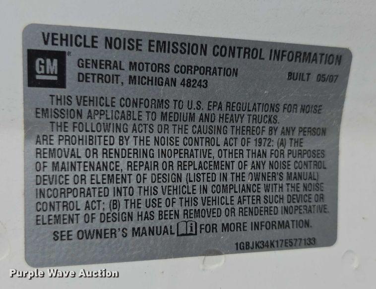2007 Chevrolet Silverado 3500HD flatbed pickup truck Miles: 36,303 on odometer VIN: 1GBJK34K17E577133 Unit #: 484 Engine Displacement: 6.0L V8 OHV Cylinders: 8 Fuel type: Gas Transmission Automatic Four wheel drive Interior AC, Heat Cruise control Features Bed Flatbed Knapheide Length: 12' Width: 3' 96" Anthony liftgate Capacity: 2,000lbs Tires Size: 215/85R16 Notes Jump start required during on-site data collection Kansas title Title distribution may be delayed up to 14 days from verification of funds. Junction City, KS 66441