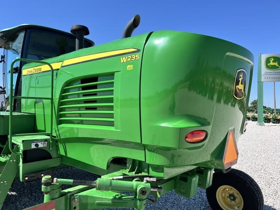 2014 John Deere W235 with 995 header. Impeller conditioner, standard operator station, 520/85R38 tires, toolbox. Serviced and ready to go to the field! Head: Hay Head, Platform Size: 16, Conditioner: Impeller, Cab with AC, 480x80r38 bar tires