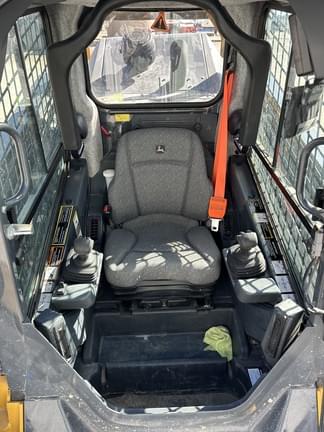 JOHN DEERE 333G COMPACT TRACK LOADER, 2023, 100hp, 4 cylinder, turbo diesel engine, 110V coolant heater, intake air pre-cleaner, CAB, HVAC, high flow hydraulics (41 gpm), 2 speed (7.8 mph), E/H switchable controls (ISO/H pattern), joystick performance package, deluxe LED lighting package, AM/FM radio, cloth air suspension seat with heat, keyless sealed switch module with programmable security codes, boom ride control, self level up, power quick tatch for bucket, reversing hydraulic cooling fan drive, rear view camera, auxiliary hydraulic outlets, 2 pairs rear counterweights, foot rest & floor mat, 84" tooth bucket, 17.7" rubber tracks, 3700# rated op. capacity, 10,500# tipping load, 12,100# normal operating weight. PICTURED WITH PALLET FORKS ATTACHED WHICH ARE "NOT" INCLUDED. Operators Station: Cab w/ AC, Operators Station: ISO Pattern, Operators Station: H Pattern, Operators Station: EH Joystick Controls, Operators Station: Air Ride Seat, Operators Station: Hi-Flo, Attachments: Aux Hydraulics, Powertrain: Ride Control, Powertrain: 2 Speed, Booms: Self-Leveling, Tracks: Wide Rubber Tracks, Buckets: 84" Bucket, Miscellaneous: Reversing Fan