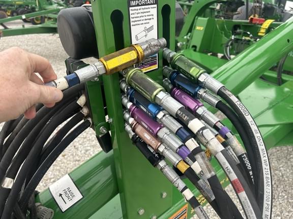 MY24 30'3" Vertical Till, 22" wavy front & rear blades, Premium TruSet Depth, Pressure control w/ side to side, gang angle control, and Fore Aft & hyd wing control, hydraulic adj knife edge & flat bar rolling basket, Cat IV hitch, mechanical stabilizer wheels, Radial 380/55R16.5 on main frame and 12.5-15 on wings. Before driving to see this item, please call or email to confirm availability.