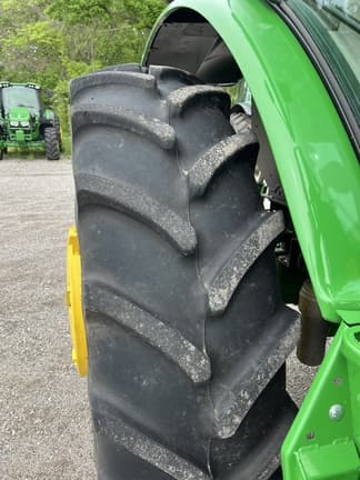 JOHN DEERE 6R 130, MFWD, CAB UTILITY TRACTOR, 2024, 130hp, 4.5 liter, 4 cylinder turbo diesel engine, 110V coolant heater, JDLink MTG, 24F/24R AutoQuad Plus transmission with left hand power reverser (25 mph), standard cab with right hand control console, cloth air suspension seat, cloth buddy seat, standard AM/FM radio, auto temp control, manual adjust telescopic rear view mirrors left and right, full access panorama doors left & right, panorama windshield, foot throttle, standard halogen lighting package, dual beacon lights, deluxe cab corner exhaust, loader lights, battery circuit breaker, 10" Gen5 command center color touchscreen display with documentation & data sync, AutoTrac ready PLUG & PLAY, DOES "NOT" INCLUDE AMS ACTIVATIONS OR SUBSCRIPTIONS, REQUIRES STARFIRE GLOBAL POSITION RECEIVER WHICH IS "NOT" INCLUDED, loader technology ready prep, 40gpm PFC hydraulic pump, 3 E/H rear remote hydraulic valves with premium couplers and high pressure relief levers, loader ready package, 3 function mechanical joystick control hydraulics & tractor half single point coupler for loader, hood guard, loader mounting frames for R series loaders (NO loader), Cat 2 three point hitch, telescopic draft links, sway control blocks, independent reversible 540/540E & 1000 rear PTO, fender mounted control switches for rear hitch, PTO and rear SCV #3 left & right, MFWD limited slip front axle plus rear differential lock, fuel tank bottom shield, 100" rack & pinion rear axles, cas