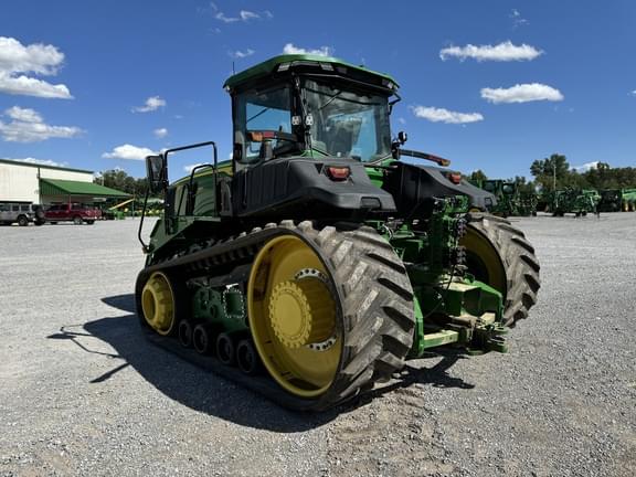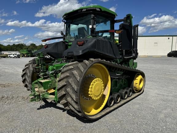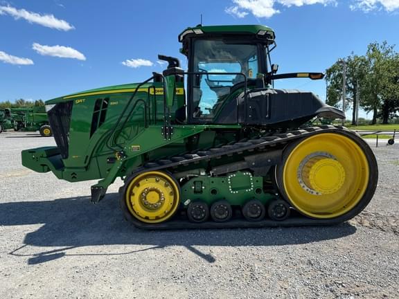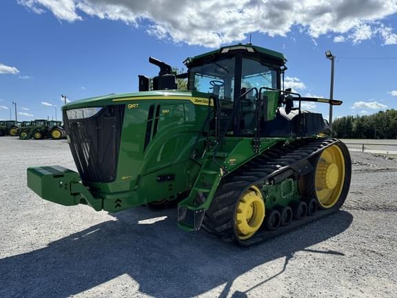 JOHN DEERE 9RT 590 TRACK TRACTOR, 2024, 590 hp, JD 13.6 liter, 6 cylinder, diesel engine, JDLink MTG, 18F/6R e18 powershift transmission with efficiency manager, Premium CommandView III cab, Premium comfort & convenience package, cloth air suspension seat, cloth buddy seat, auto temp control, premium AM/FM radio, refrigerator, business band radio ready, dual electric adjust rear view mirrors, camera ready, premium LED lighting package, LED beacon lights, dual beam radar sensor, dual G5 Plus Command Center 12.8" displays with permanent licenses for AutoTrac steering, Section Control, Data Sync, Over Air updates & Remote Display Access, renewable SF-RTK license for turn automation, implement guidance, auto path, machine sync & in field data share with integrated Starfire SF-1 global position receiver (accuracy subscriptions required), 110 GPM dual hydraulic pump, 6 rear remote hydraulic valves with ISO couplers and high pressure relief levers, auxiliary hydraulic connectors (power beyond, motor return, case drain & load sense couplers), independent 1000 rpm (1 3/4") rear PTO, LESS 3 point hitch, Cat5 HD wide swing roller drawbar (2.75" pin), front weight support with 20 front weights, 2,780# front track idler weights, polyurethane mid rollers, 36" Camso AG 4500 tracks, 106" track spacing, 142" outside to outside, FULL JD FACTORY WARRANTY UNTIL 02-28-2026 OR 2000 HOURS. Guidance-ready: Yes, Guidance Receiver: Yes, Guidance Display: Yes
